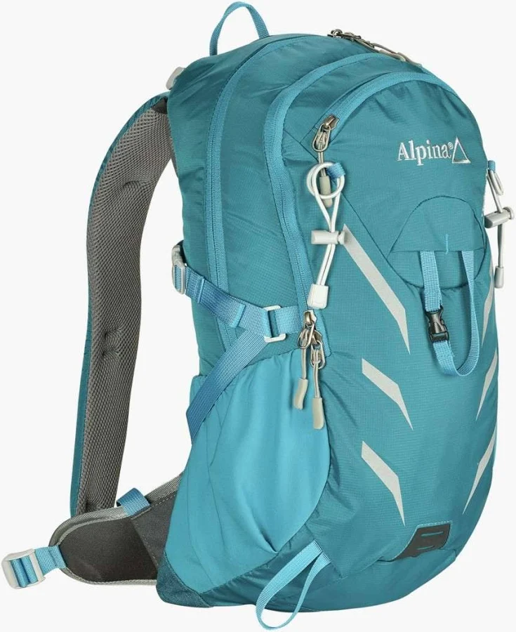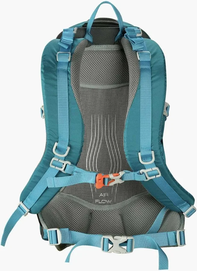 Funda para la lluvia, tensor de pecho, silbato de emergencia, cintas compresión lateral, bolsillo rejillas laterales, soporte para bastones, acceso hydrobag, modelo unisex.
